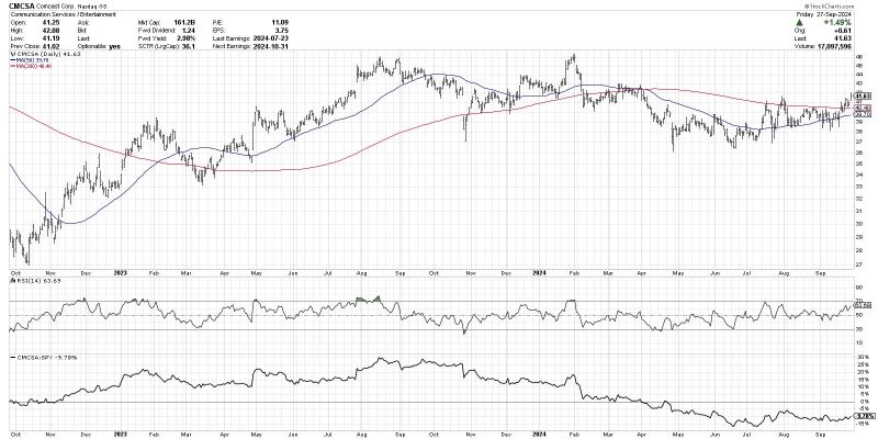 This week, CMCSA finally pushed back above its 200-day moving average, as well as the previous peak from mid-July. If this stock can follow through above the $42 level, we could easily see a retest of the January 2024 peak around $46 and beyond.
